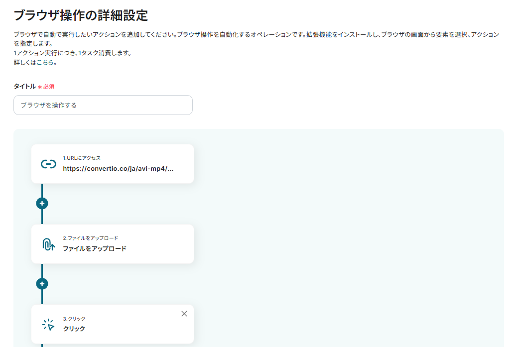 ※ブラウザを操作するオペレーションは、サクセスプランだけで使える機能です。フリープラン・ミニプラン・チームプランで設定しているフローボットでブラウザ操作を行おうとするとエラーになるのでご注意ください。