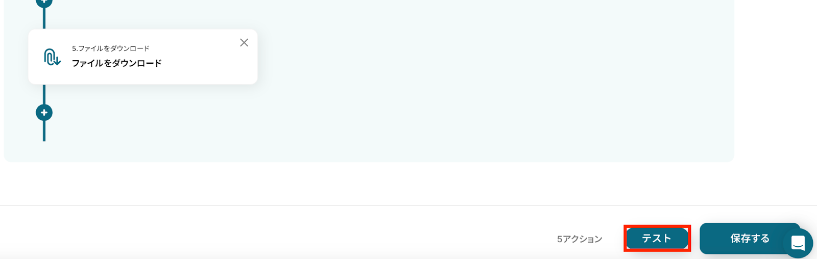 4,ステップ4で取得したJPGファイルがファイル名の欄で設定されていることを確認しましょう。 ファイルの添付方法は、テンプレートのままで問題ありません。 設定が終わったら、赤枠の「テスト」ボタンでテストを実行してみましょう!