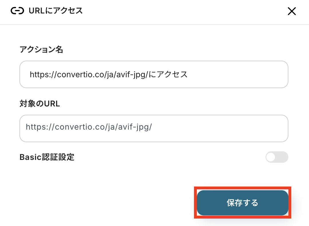 1つ目の設定では対象のURLを入力して「保存する」をクリックします。