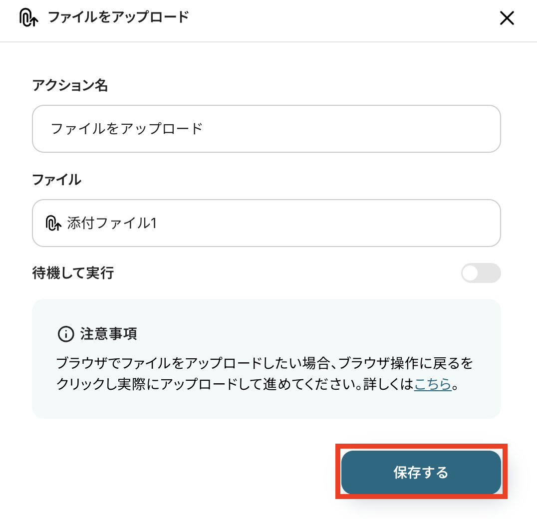 Googleフォームのトリガー設定で、ファイル以外に取得したい回答項目(氏名やメールアドレスなど)を任意で設定してください。これらの情報は後続のオペレーションで活用できます。 RPA機能でブラウザを操作する際、ファイル変換に使用するWebサイトのURLを任意で設定してください。 Dropboxにファイルをアップロードする際、格納先のフォルダを任意で指定してください。 ■注意事項