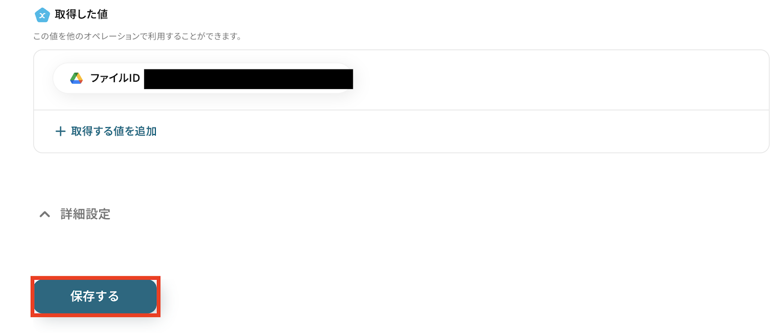 8,取得した値が確認できたら、「保存する」ボタンで設定を保存します。