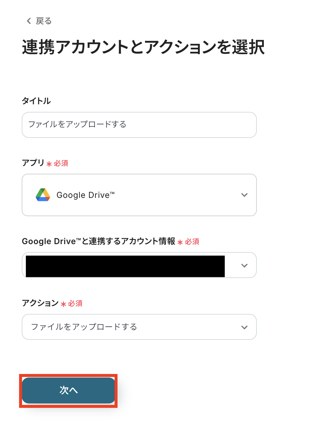 ステップ5:Google Driveのアクション設定