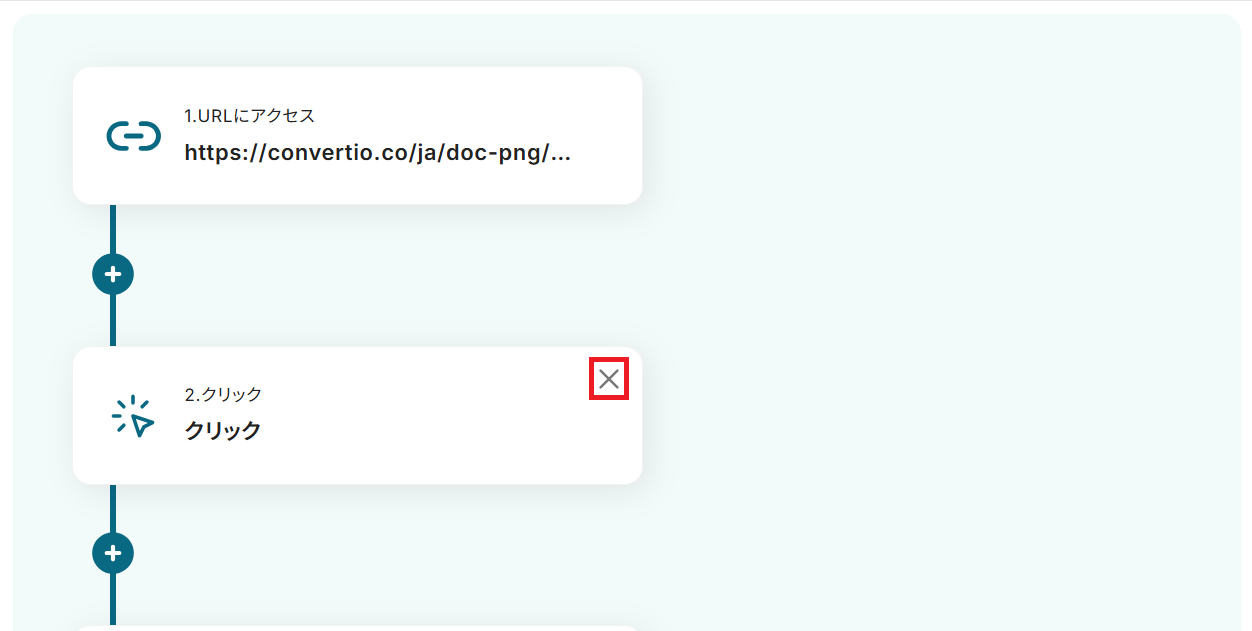 予め設定されているWebサイトと異なるサイトを使用する際は、各アクションの右上の×マークから元のフローを削除して、そのサイトに合わせてアクションを設定しましょう。