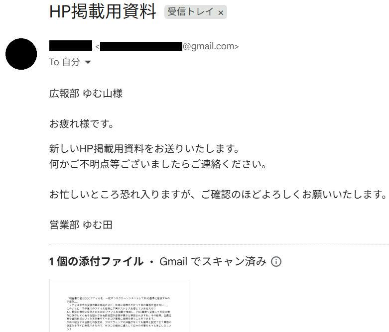 最後に、連携したGmailアドレスにDOCファイル付きメールを送信しましょう。