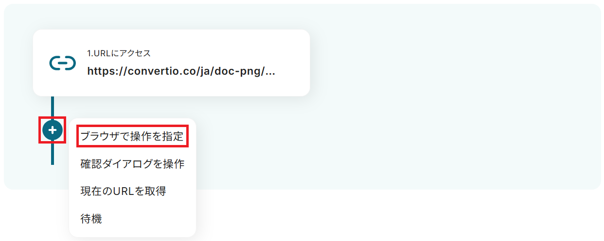 「1.URLにアクセス」の下の+マークをクリックし「ブラウザで操作を指定」を選択してください。