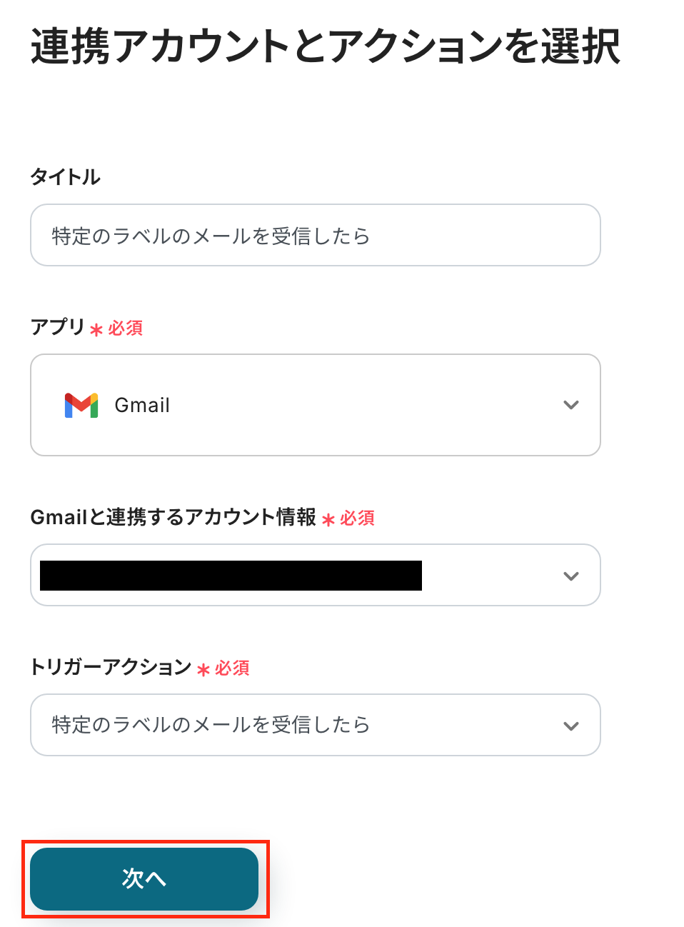 - Gmailのトリガー設定では、自動化の対象とするメールを識別するためのラベルを任意で設定してください