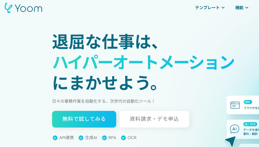 今回ご紹介したような業務自動化を実現できるノーコードツール「Yoom」を使えば、プログラミングの専門知識がない方でも、画面の指示に従って直感的な操作で簡単に業務フローを構築できます。