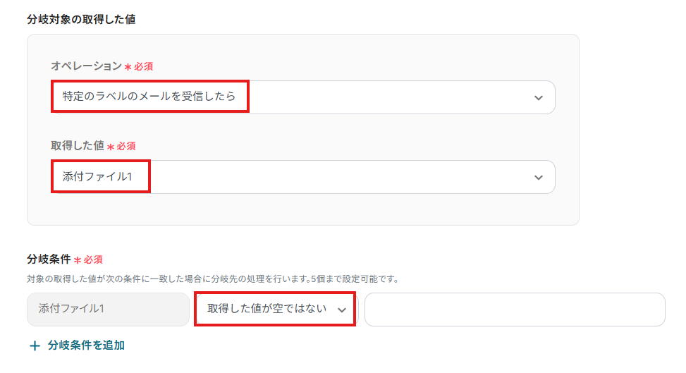 ・分岐はミニプラン以上のプランでご利用いただける機能(オペレーション)となっております。フリープランの場合は設定しているフローボットのオペレーションはエラーとなりますので、ご注意ください。