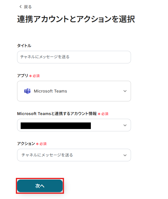ステップ3:Microsoft Teamsのトリガー設定