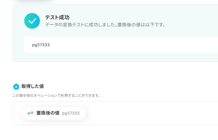 5.入力を終えたら「テスト」をクリックし、「取得した値」にデータが抽出されていることを確認してください。