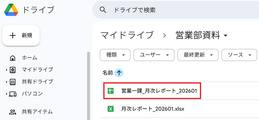 Microsoft ExcelファイルがGoogle スプレッドシートに変換され、指定したGoogle Driveフォルダに格納されました!