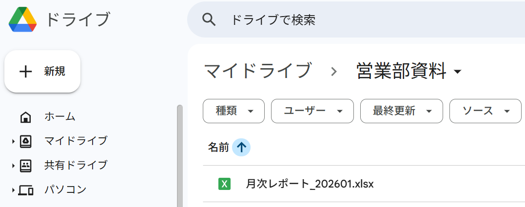 そこでもしGoogle Driveの特定フォルダにMicrosoft Excelファイルをアップロードするだけで、Google スプレッドシートに自動変換される仕組み があったらどうでしょう。 こうしたファイル形式の違いを意識しなくてもデータ入力や情報共有がスムーズになり、より本質的なデータ分析や資料作成といった業務に集中する時間を生み出せますね!