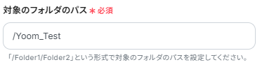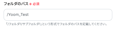 「フォルダのパス」を設定します。ステップ3でトリガーに設定したフォルダのパスと同一のものを設定しましょう。