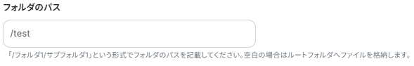「フォルダのパス」を設定します。ファイルをアップロードしたいフォルダのパスを入力しましょう。