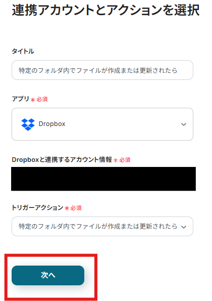 ステップ3:Dropboxのトリガーアクション設定