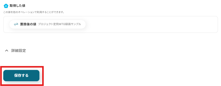 「置換対象」を設定しましょう。「取得した値」を使用できます。
