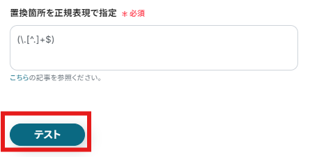 以下の赤枠内の「正規表現によるデータの置換(ファイル名から拡張子を削除)」を選択します。