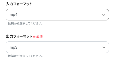「入力フォーマット」を設定しましょう。今回は例としてmp4ファイルを使用しているので「mp4」にしています。