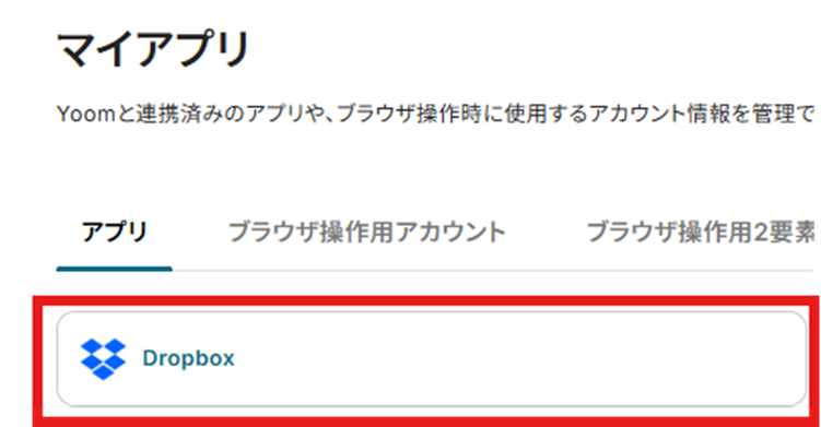 ・Dropbox、SlackのそれぞれとYoomを連携してください。