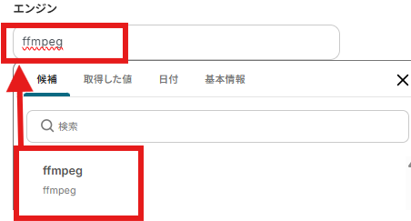 「エンジン」を候補から選択しましょう。