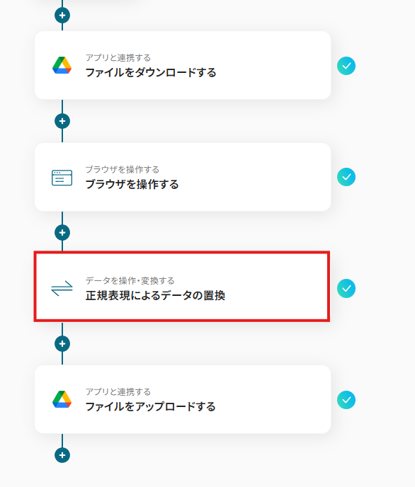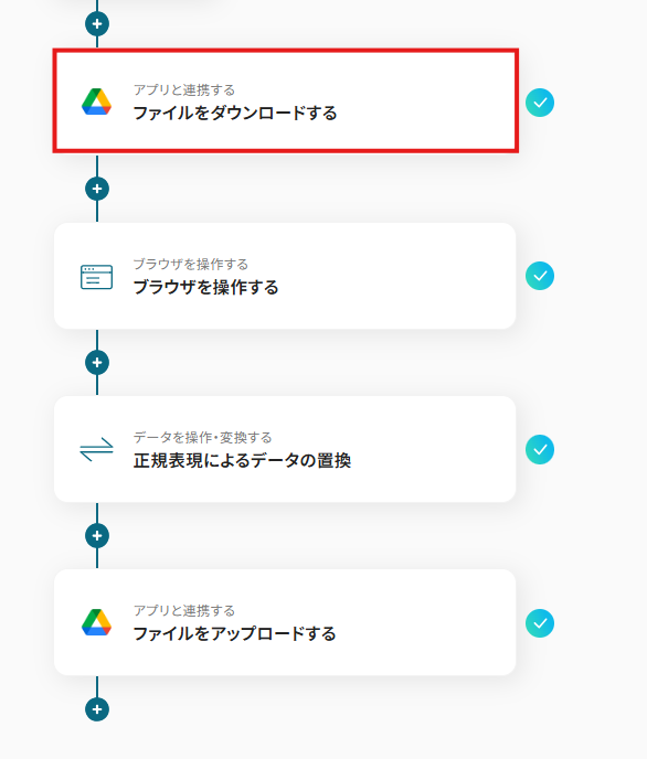 ファイルを変換するためのWeb上の操作として、「3.クリック」というアクションを追加しています。