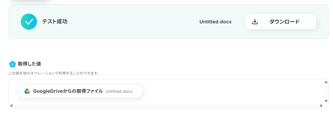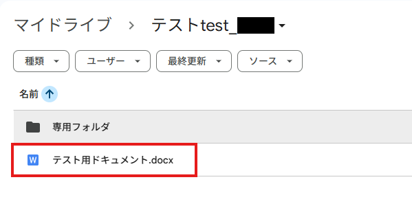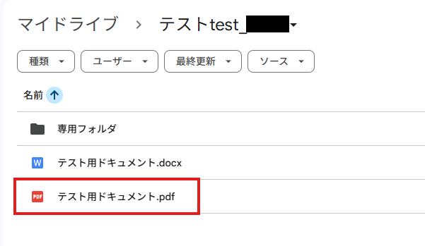 設定完了後は「テスト」を行い、実際にGoogle Driveにデータが格納されることを確認してください。