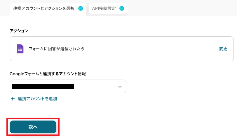 アカウント情報は、トリガーと連携したいアカウントが選択されているか確認してください。