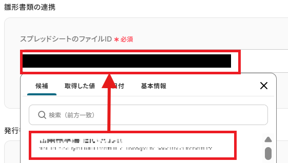 雛型書類、格納先のGoogle DriveフォルダIDを候補より選んでください。