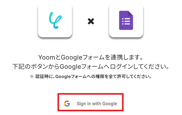 連携確認ページが出てくるので、「Sign in with Google」を押してください。