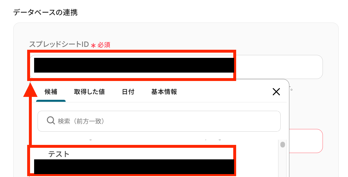 データベースの連携の欄の設定を行っていきます。