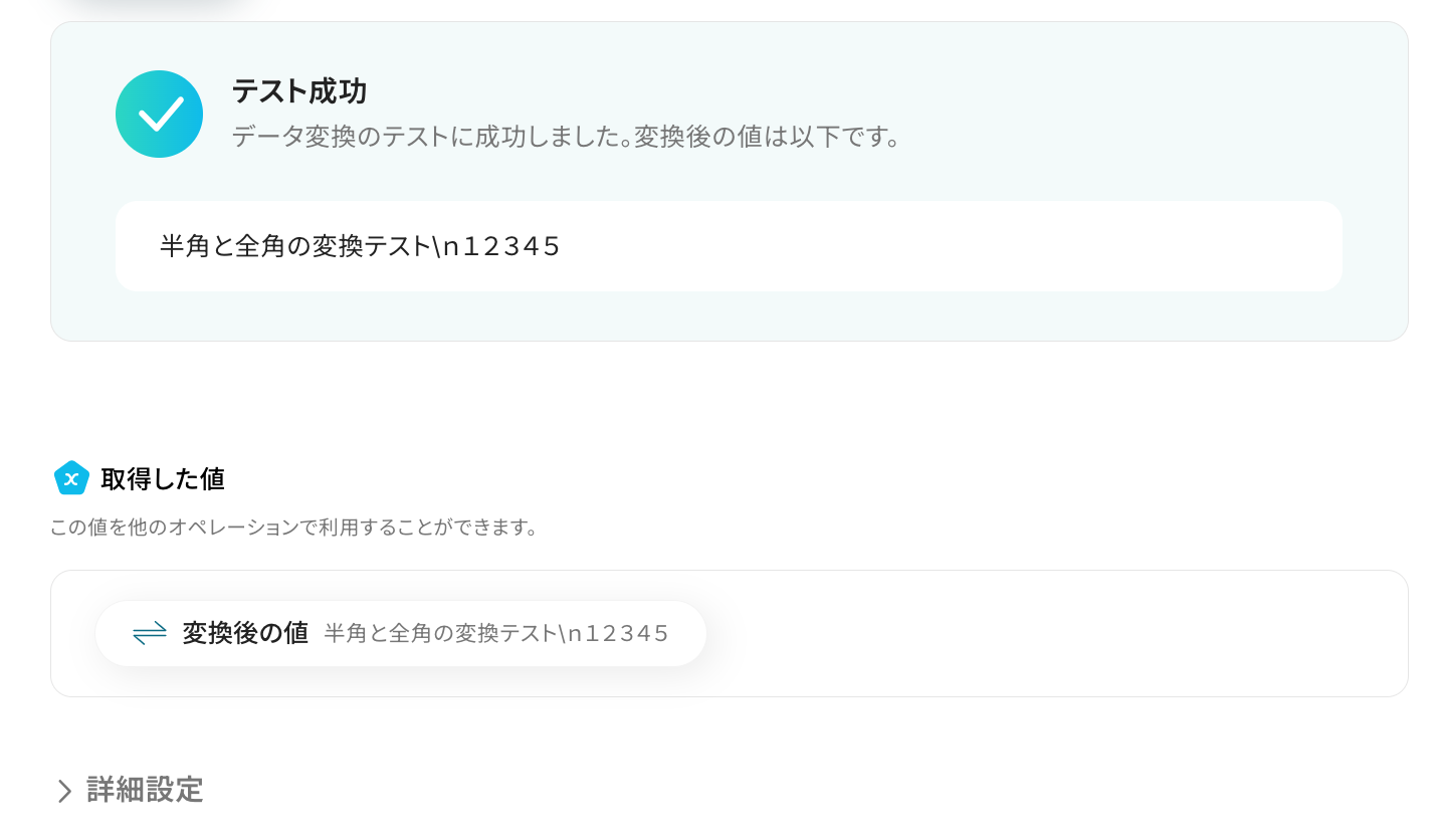 テストが成功すると、下記のように変換後のテキストが表示されます。