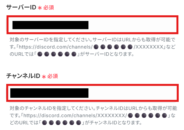 画面の案内に沿ってサーバーIDとチャンネルIDを入力します。