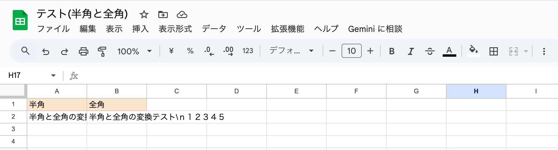 Google スプレッドシートで新しいデータが追加されるたびに、全角カタカナが自動的に半角に変換されます。