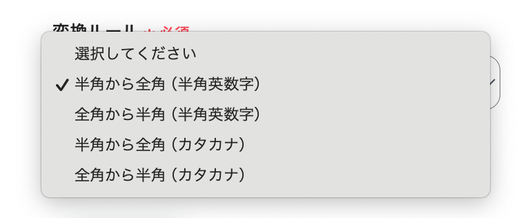 今回は半角文字を全角文字に変換したいので、下記のように入力しました。