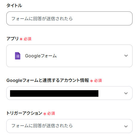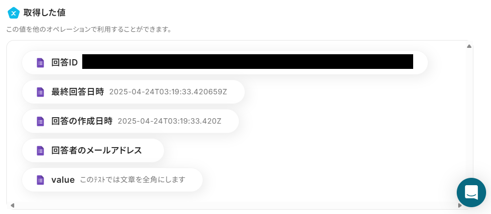 ・Googleフォームをトリガーとして使用した際の回答内容を取得する方法は下記を参照ください。