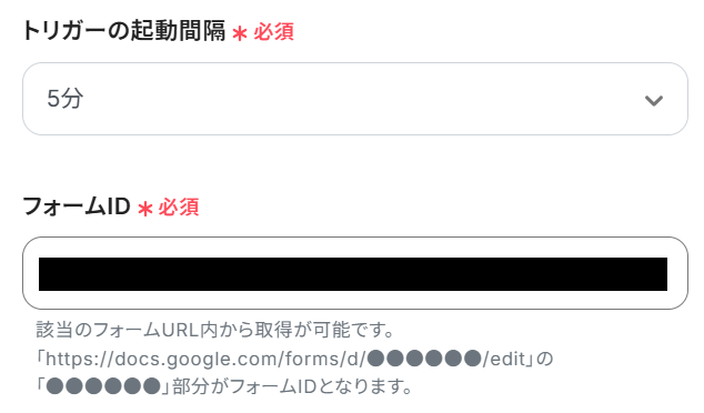 - フォームID:入力欄下の注釈を参考に、先ほど作成したGoogleフォームのフォームIDを入力してください。