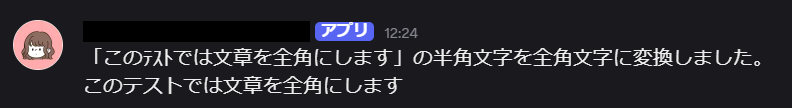 今回は、半角文字を全角文字に変換したいため、下記のような半角文字を含んだ内容で回答しました。