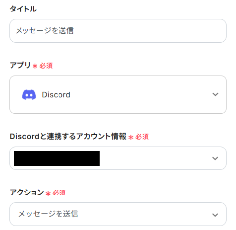 Discordに投稿したいメッセージ内容を、アウトプットを活用してお好みで入力してください。