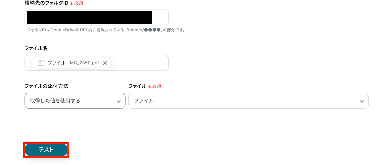 ステップ5:Google Driveのアクション設定
