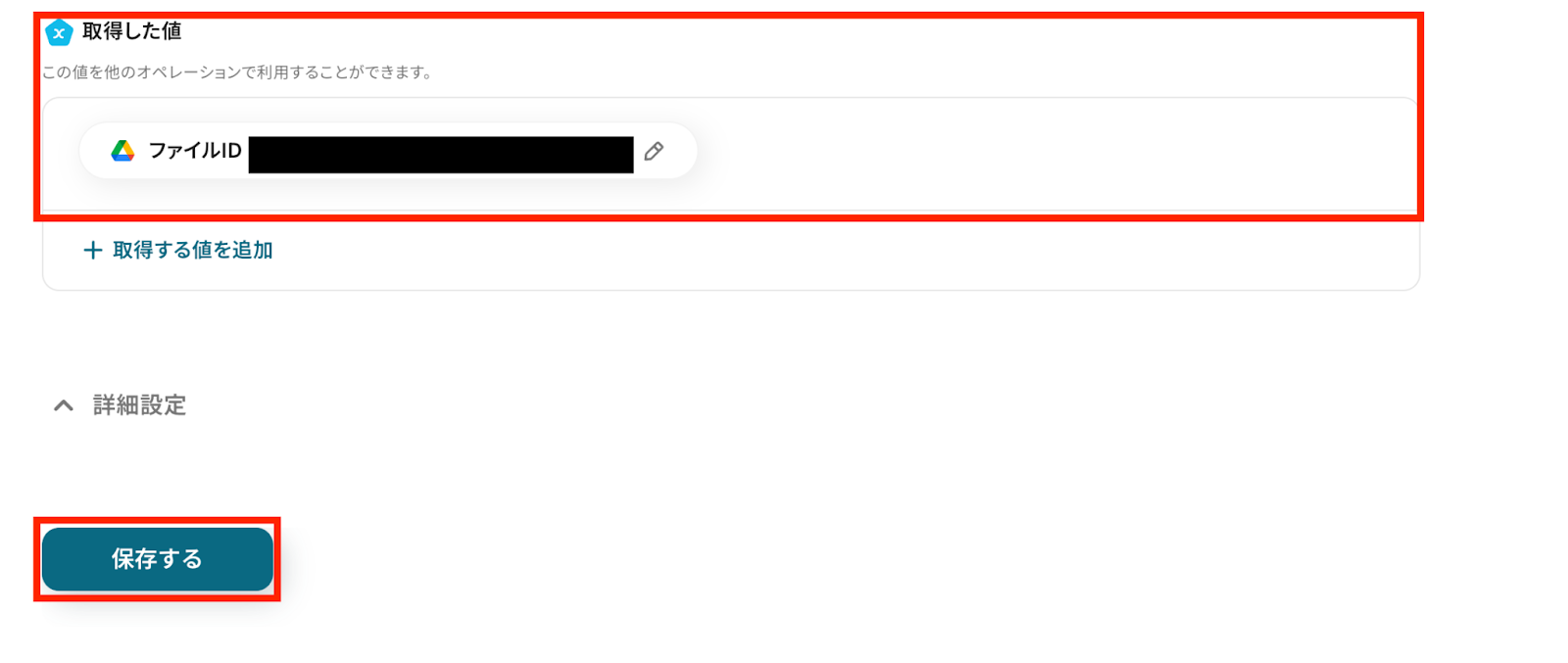 ⑩テストを行い、値が取得できたか確認して保存します。
