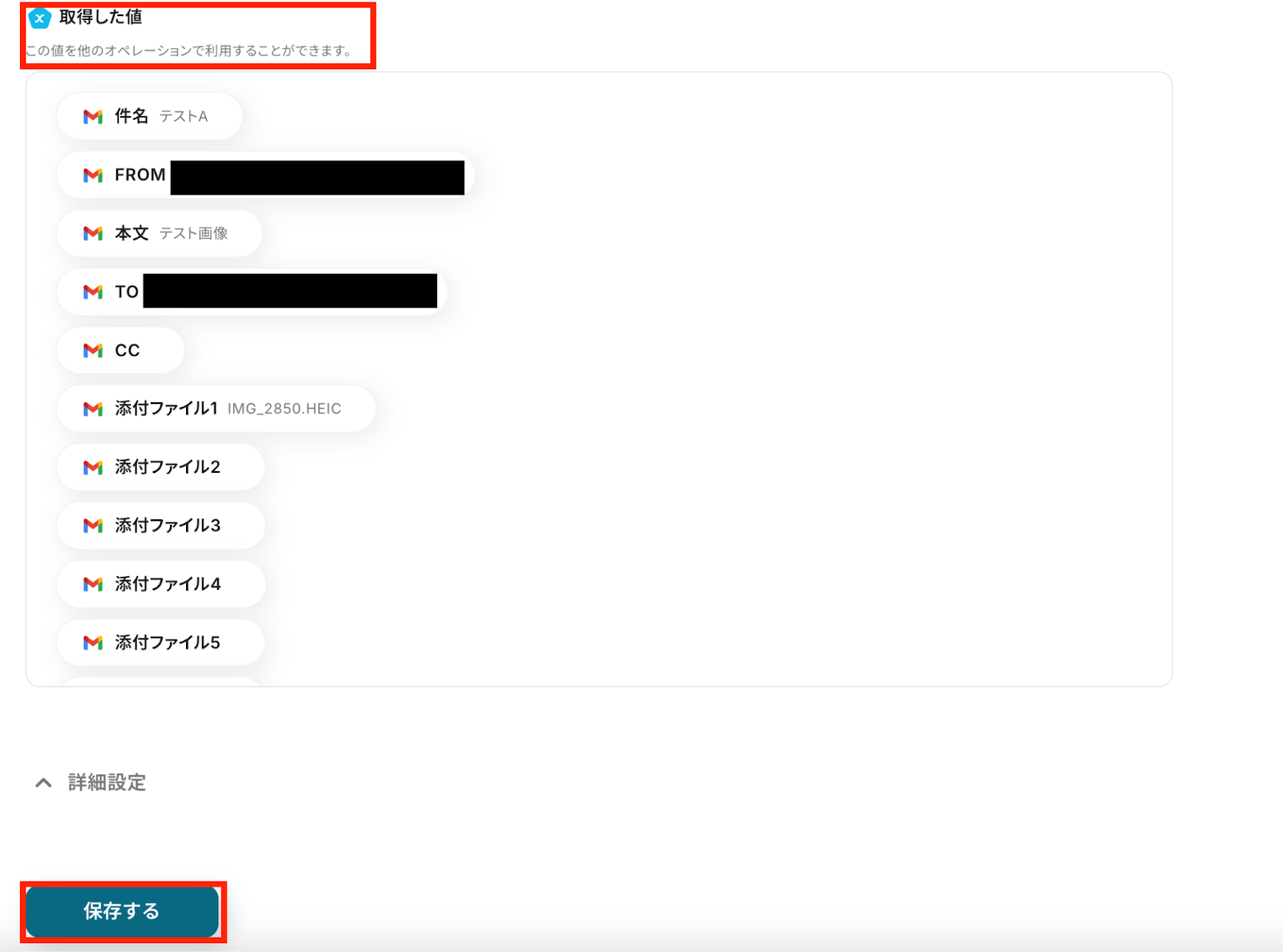 8,取得した値が確認できたら、「保存する」ボタンで設定を保存しておきましょう!