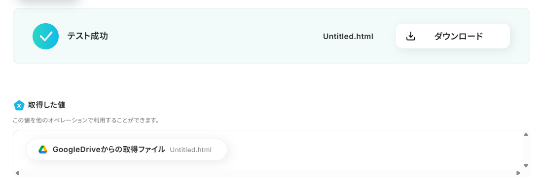 ※後続のGoogle Driveのトリガー設定時のテストで必要になります。