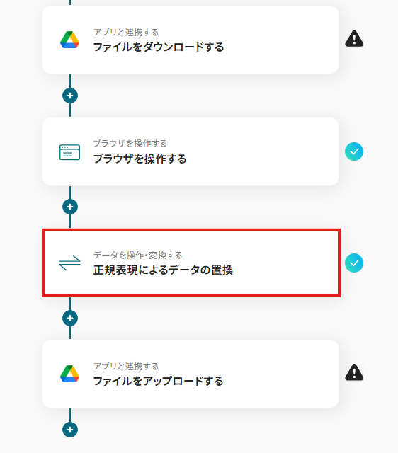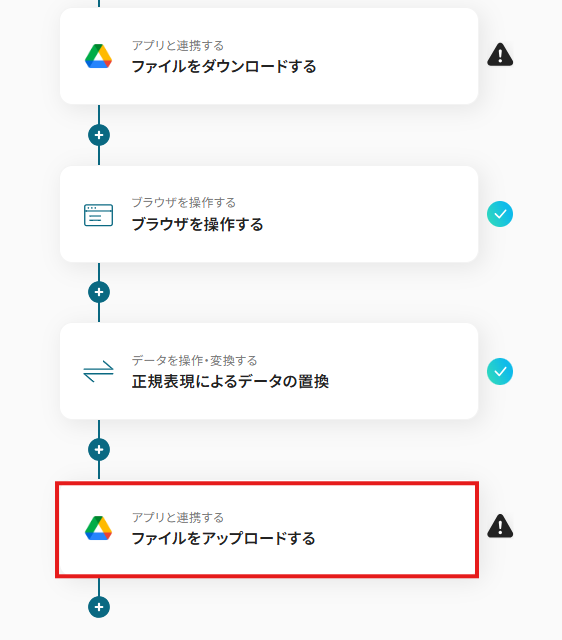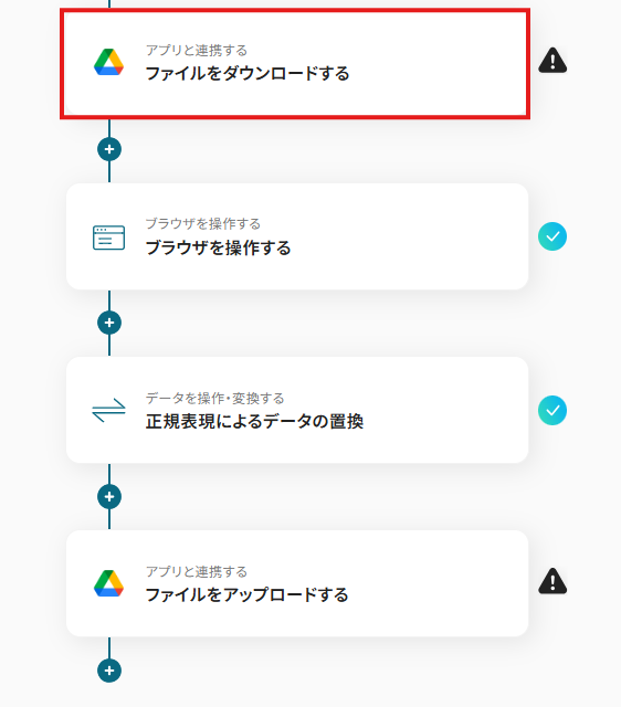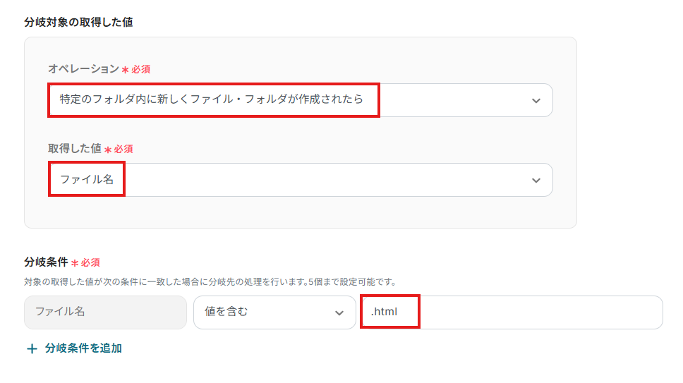 こちらのステップでは、任意のファイルのみ後続の処理を行うために分岐設定をします。