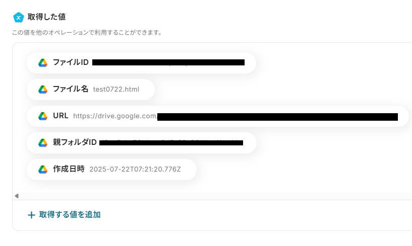 取得した値は、後続の設定で活用できます!