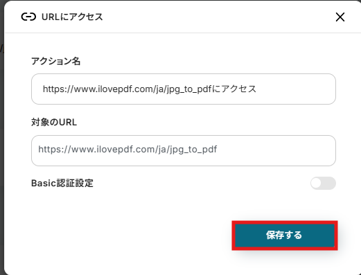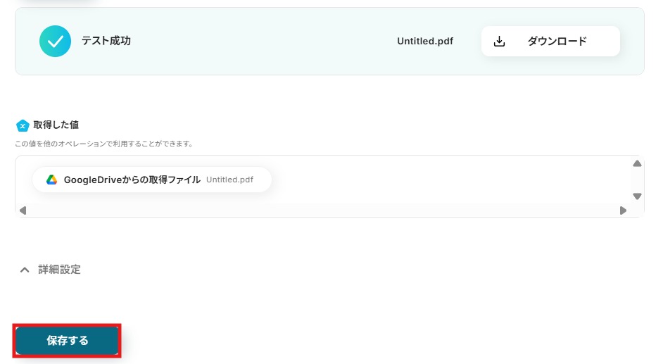 なお、PDFの変換に時間がかかる場合があるので、ダウンロード前に待機アクションを入れています。