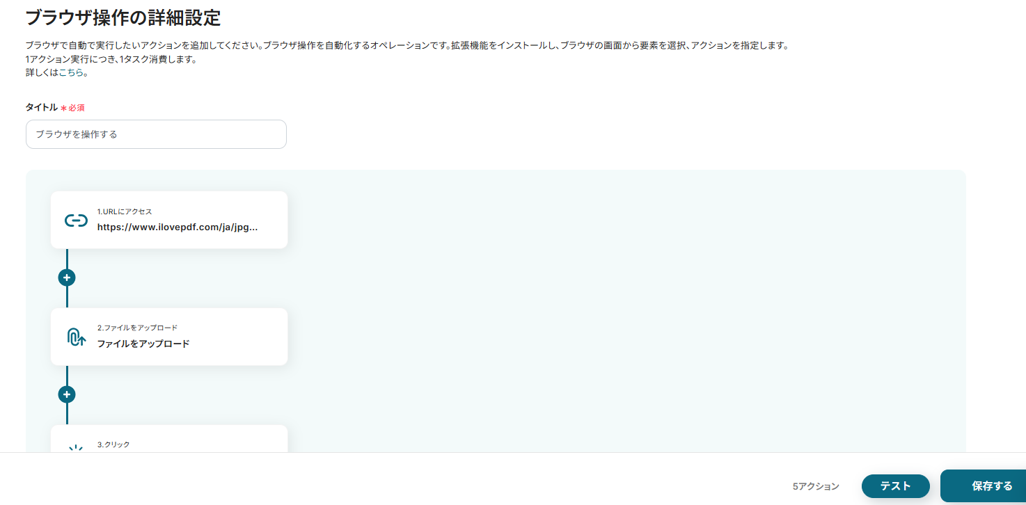 3)1つずつアクション内容を確認し、問題なければテストをクリックします。