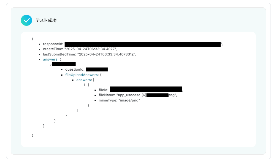 ・Googleフォームをトリガーとして使用した際の回答内容を取得する方法は下記を参照ください。