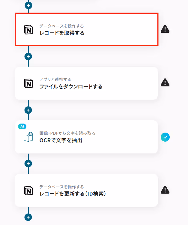 それではここから代表的な例として、Notionに画像ファイルが追加された際に、自動でテキスト情報を抽出し、同じレコードに追記するフローを解説していきます!