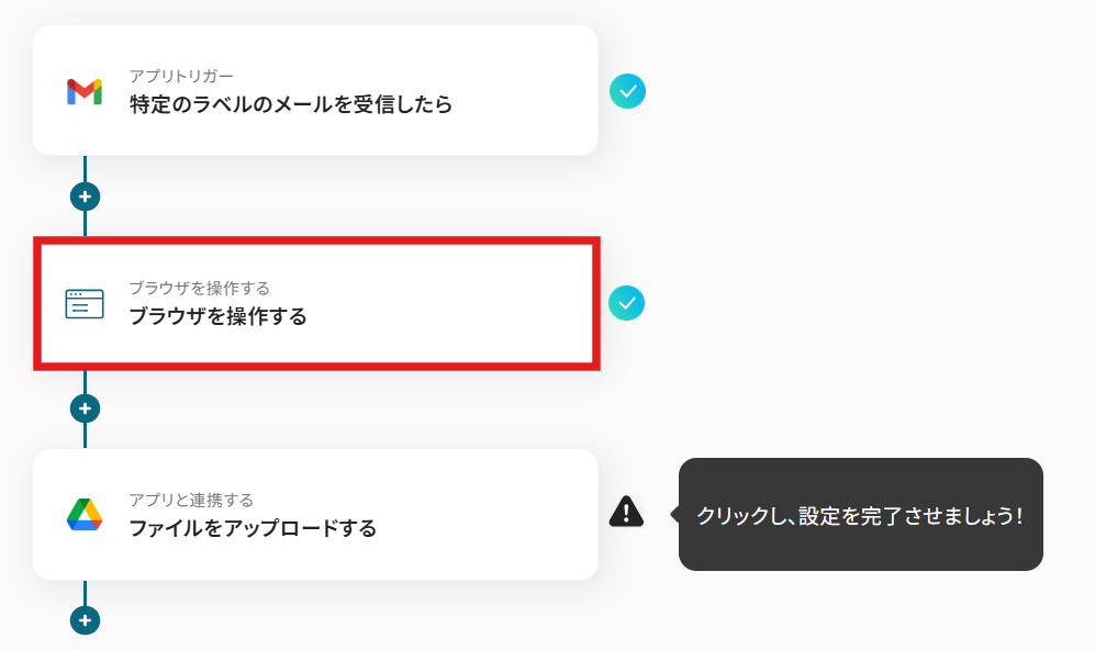 ■概要 メールで受け取ったファイルを、その都度オンラインサイトでPDFに変換して保存する作業に手間を感じていませんか。この一連の作業は定型的でありながらも、積み重なると多くの時間を要し、本来注力すべき業務を圧迫する一因にもなり得ます。このワークフローを活用すれば、Gmailでファイル付きのメールを受信するだけで、オンラインのPDF変換サイトでの操作からGoogle Driveへの格納までを自動化し、`online to pdf`に関わる手作業を効率化できます。 ■このテンプレートをおすすめする方 ・Gmailで受信したファイルを、手作業でオンラインのPDF変換サイトを利用し作成している方 ・定期的に発生するファイル変換とGoogle Driveへの保存作業を自動化し、効率化したい方 ・`online to pdf`のようなルーティンワークにおける、人的ミスの削減や業務品質の向上を目指す方 ■注意事項 ・GmailとGoogle DriveのそれぞれとYoomを連携してください。 ・トリガーは5分、10分、15分、30分、60分の間隔で起動間隔を選択できます。 ・プランによって最短の起動間隔が異なりますので、ご注意ください。 ・ブラウザを操作するオペレーションはサクセスプランでのみご利用いただける機能となっております。フリープラン・ミニプラン・チームプランの場合は設定しているフローボットのオペレーションはエラーとなりますので、ご注意ください。 ・サクセスプランなどの有料プランは、2週間の無料トライアルを行うことが可能です。無料トライアル中には制限対象のアプリやブラウザを操作するオペレーションを使用することができます。 ・ブラウザを操作するオペレーションの設定方法は下記をご参照ください。 https://intercom.help/yoom/ja/articles/9099691