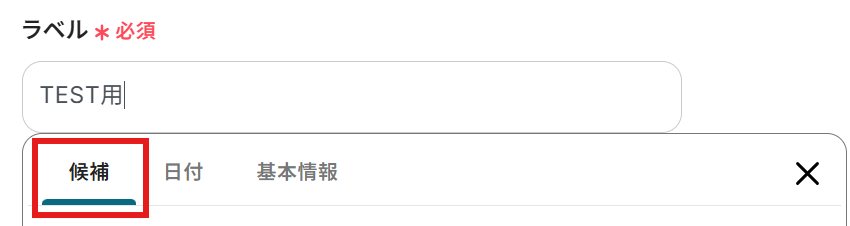 ラベル: 入力欄をクリックすると候補が表示されるので、その中から選択しましょう。